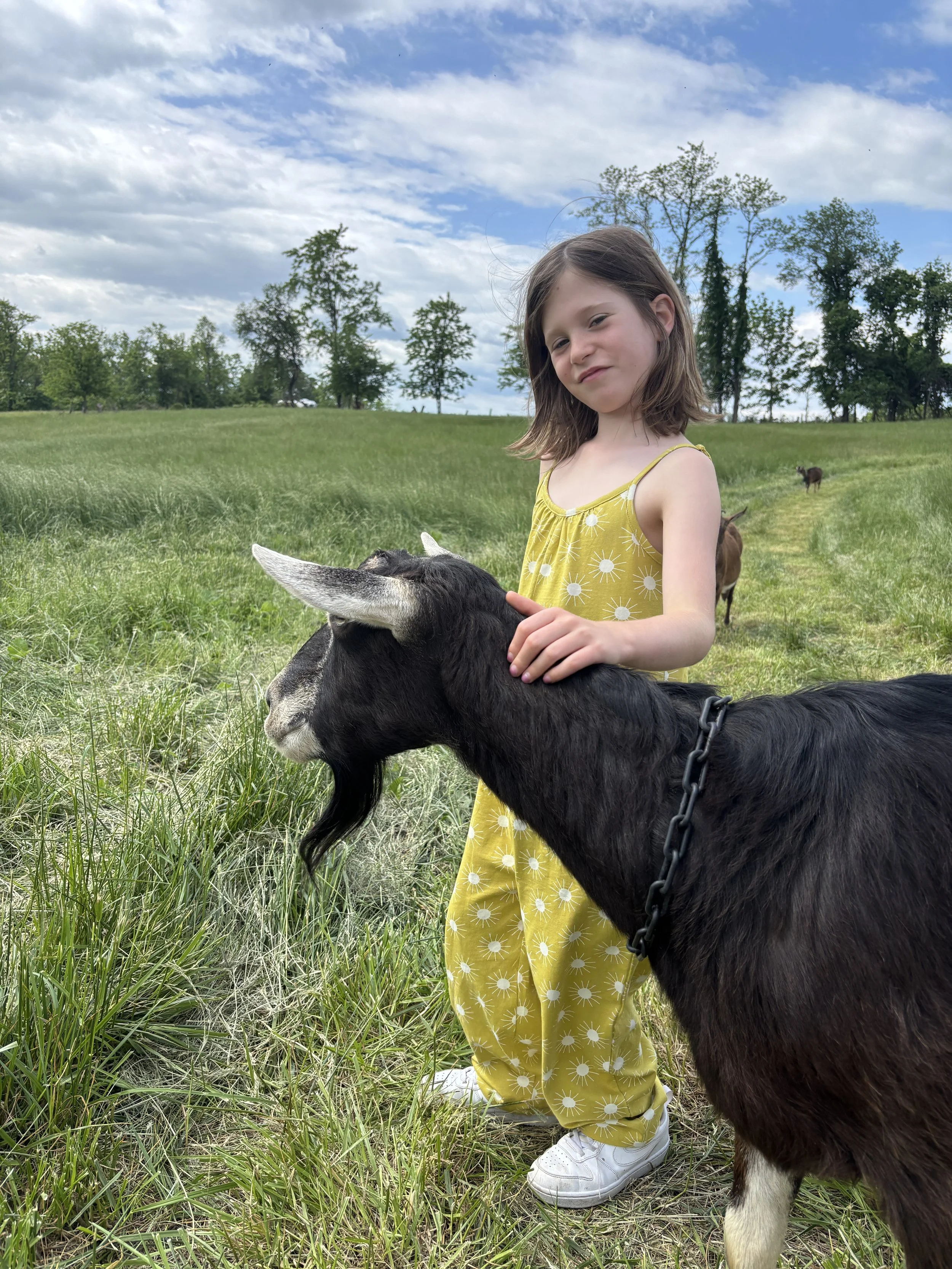 My eldest with a goat at Georges Mill Farm, one of the local businesses featured in the piece.